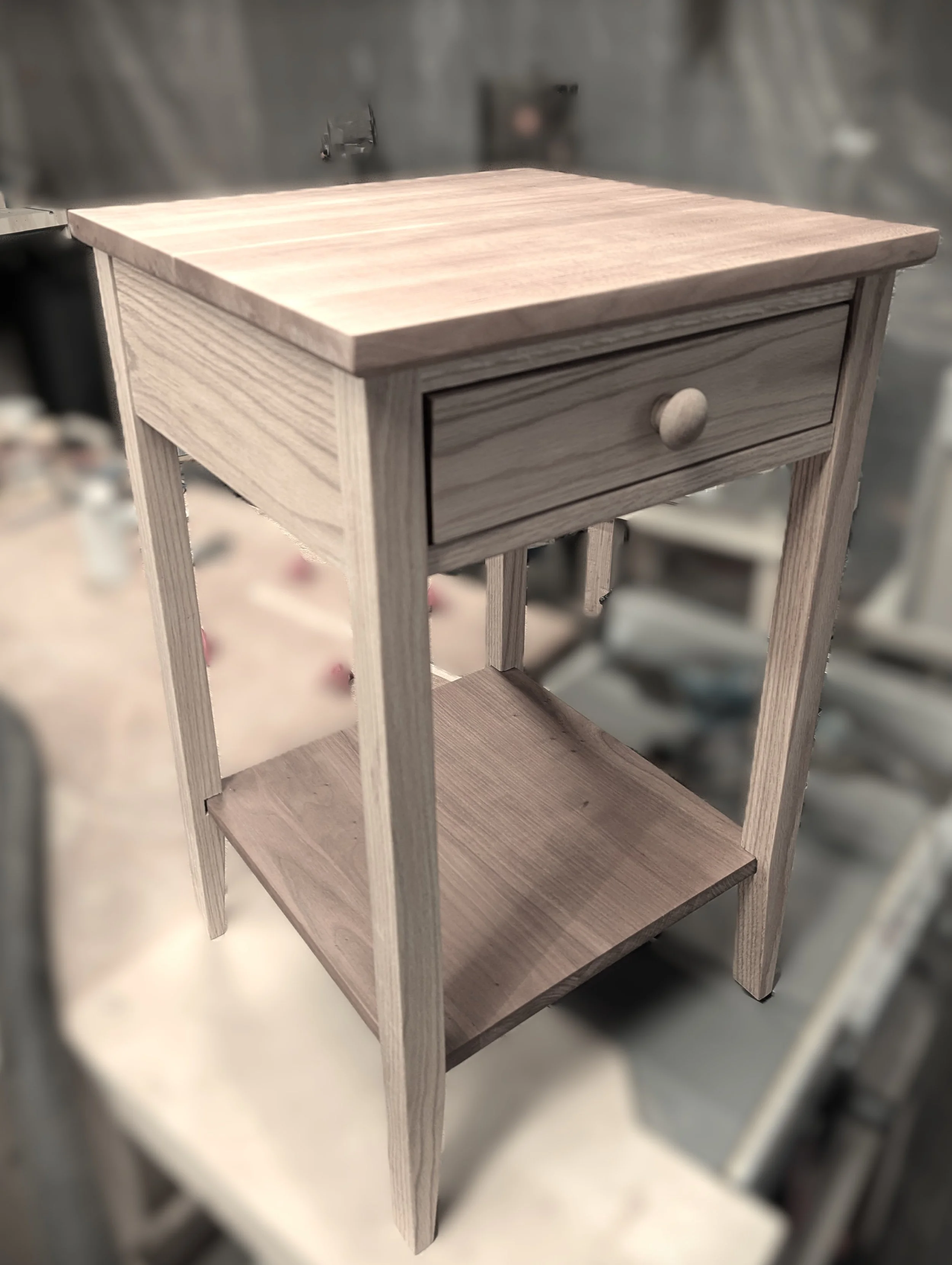 Consider the simple side table. It has a drawer and a bottom shelf. You could also call it a nightstand. I prototyped one because my friend Scott will be visiting in a few days and wants me to help him make one for one of his daughters. The one I made hasn’t been glued up yet; it’s a dry fit. I wanted us to be able to deconstruct it when he gets here, so he can see what the construction is like, all of its mortises, tenons, and dowels. Scott studies texts and analyzes their construction. I want him to see furniture that way.