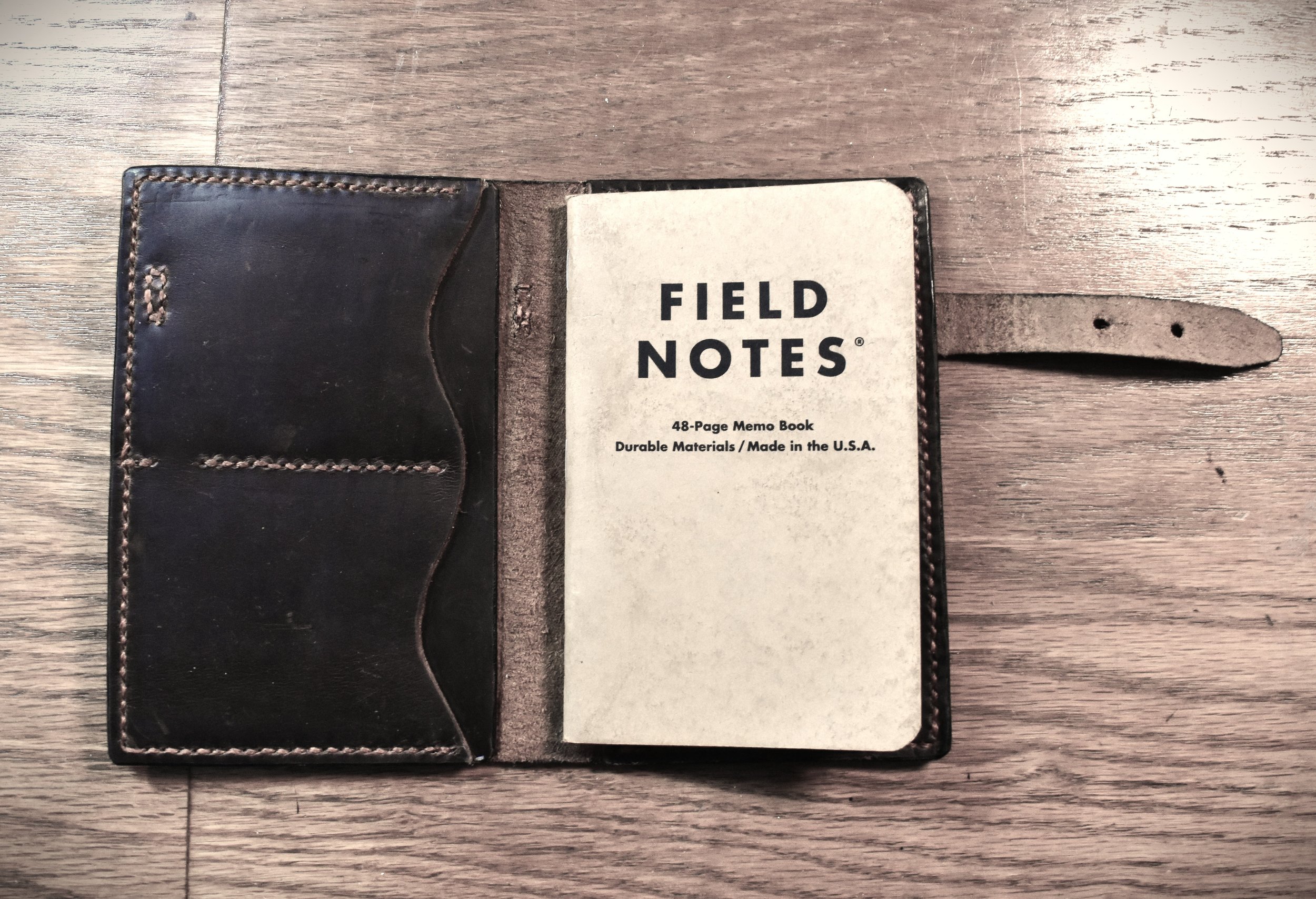 Re Field Notes: Note to self. Wait until leather conditioner has completely soaked in before inserting Field Notes, so as not to cause oil stains on the cover, as shown above.