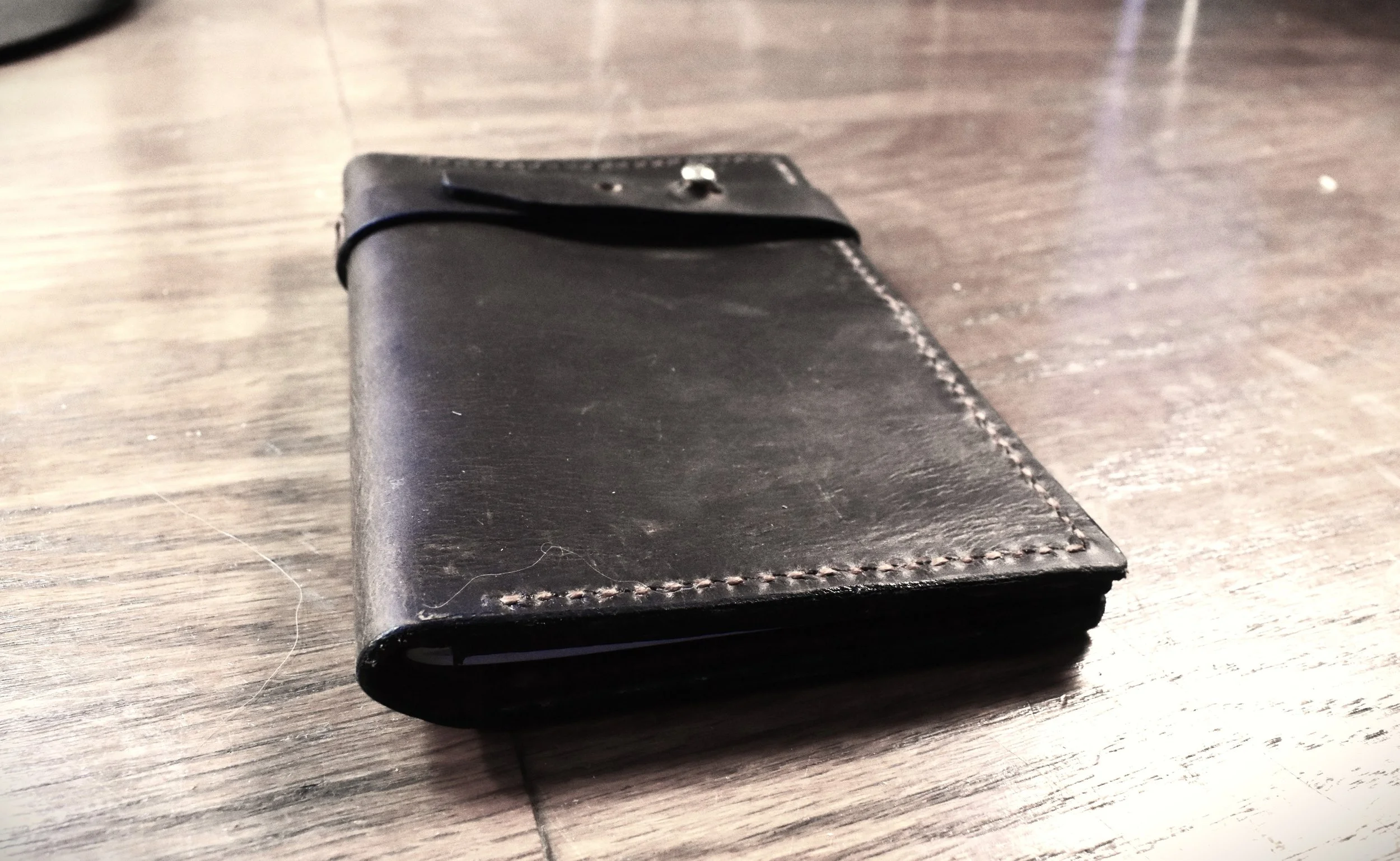 I used the scrap veg-tan leather bundle from Tandy and a template I found online to make a journal cover. I bought cheap tools and thread, did my best, and it came out not so shitty that I wouldn’t use it myself. And I do, all the time. It replaced my wallet (it has card holders). I bought some softer oil-tanned leather and made a second one for Scott. The stitching was straight, the sizing was perfect, and the enclosure was way better (on mine, I used one of Faith’s hair ties; his uses a strap and an antique brass button stud enclosure).